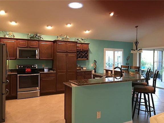 This 3 br 2 ba popular Lilly Model is "better than new" with many upgrades. These include Plantation Shutters throughout, added 24' x 25' private bird cage. Painted garage floor, driveway, lanai and birdcage create finished look to your outdoor living. Professional landscaping w/brick & rocks (+more...) Rooms are extremely spacious & well designed. Master br is fantastic size with beautiful master bath walk in roman shower & lots of cabinets! Front br is 15'9" x 11'8" bright and very accomo-dating even as den/office combo. 3rd br is also spacious 12'2X12'6. Driving up to this house is a pleasure, end of culdesac, birdcage & lanai are a beautiful escape or fabulous place to entertain.