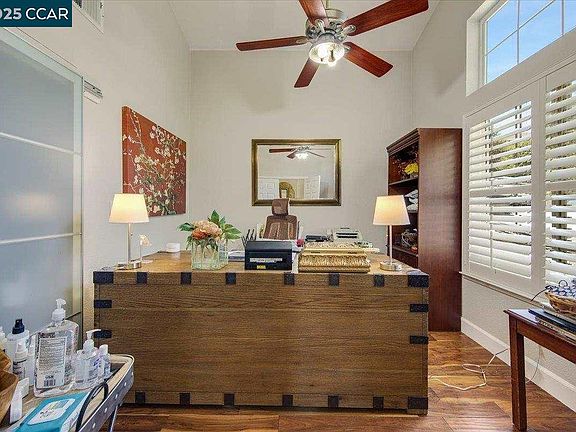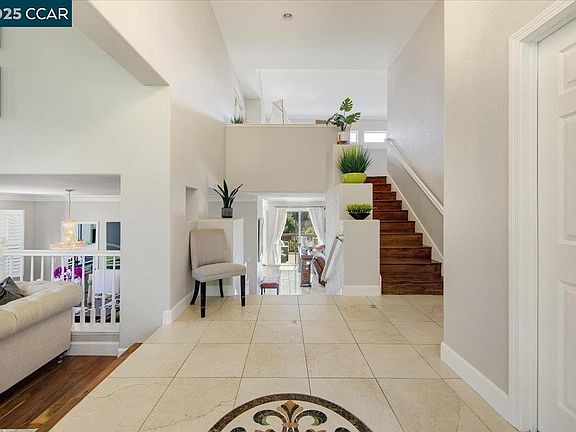 Prepare to be amazed by this stunning contemporary home in the prestigious King's Crest neighborhood, offering breathtaking views of Mt. Diablo. Situated on a spacious .25-acre lot, this home boasts over $300k in luxurious upgrades, making it a true masterpiece. Step inside and be greeted by elegant French doors and vaulted ceilings that create an airy, open feel. The family room invites relaxation with its cozy fireplace and glass sliding doors that lead to a spectacular outdoor paradise. Imagine unwinding on the patio, taking a dip in the sparkling gunite pool or jacuzzi with a pebble tech finish, or hosting friends in your private oasis.The kitchen is a chef’s dream, featuring a center island, sleek new light fixtures, and newer stainless steel appliances. French Wavy stone flooring and Brazilian hardwood add a touch of sophistication throughout, while recessed lighting and plantation shutters provide the perfect blend of style and functionality. Retreat to upgraded bathrooms with Restoration Hardware vanity sinks, LED mirrors, and luxurious touches that feel like your own spa getaway. A private wine cellar, smoked glass closet doors, and elegant crown molding complete the modern elegance and so many thoughtful details, this home isn’t just a place to live—it’s a lifestyle.