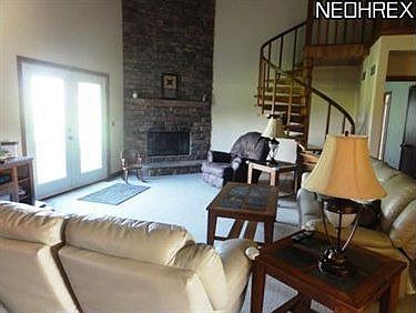 If you're looking for for that WOW factor...here it is! Over 2.3 Acres on a beautiful country setting boasting a 2-story dramatic Stone Fireplace, Great Room w/cathedral ceiling & Spiral Staircase to Loft bedroom. Gourmet Cherry Kitchen w/Granite Center Island & Copper Prep Sink, Abundant storage, Breakfast Bar & Eating Area. Formal Dining Room, Fabulous Master Suite with walk-in closet & large bath. French doors off Master to Hot Tub patio which overlooks Lake. 13 coarse basement & 1 Year Home Warranty!