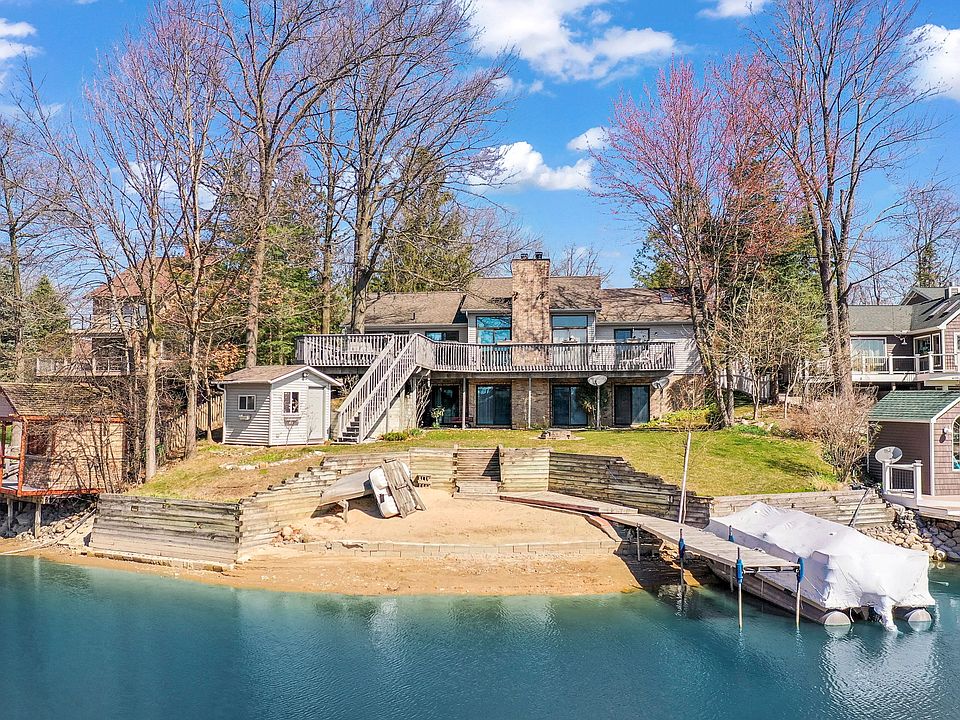 Peaceful tranquility and open living spaces abound in this custom designed 3 (possible 4) bedroom, 3 full bath all-sports Lake Lapeer waterfront home with gorgeous open water views. This one of a kind property is ideally suited for either daily living or use as an exclusive getaway retreat. Elevated panoramic water views and a masterfully designed floor plan specifically crafted to bring the outdoors in distinguish this home from the rest. Enjoy a centralized open great room w/wood flooring, kitchen w/extensive cabinetry, stunning lake views and full stainless steel appliance inclusion. The lakefront master suite offers deck access, extensive closet space & full bath w/jetted soaking tub, dual sink vanity & walk-in shower. Additional amenities include a 1st Floor laundry, central air, vaulted ceilings & 2 fireplaces. The completely finished walkout/daylight lower level offers a 2nd kitchen and flexible living spaces. Outside, enjoy a 3 car side-bay garage, extensive vaulted decking, shed, beach and dock inclusion w/home sale. Enjoy all of this while located minutes from City of Lapeer amenities & I-69 access.