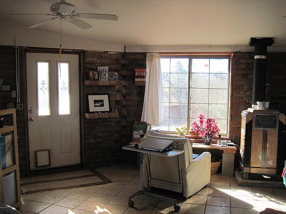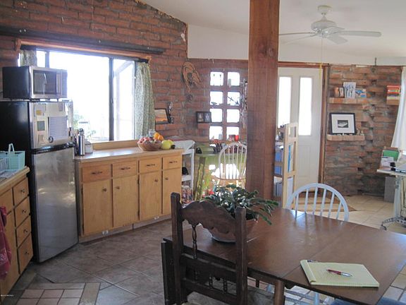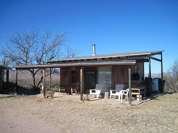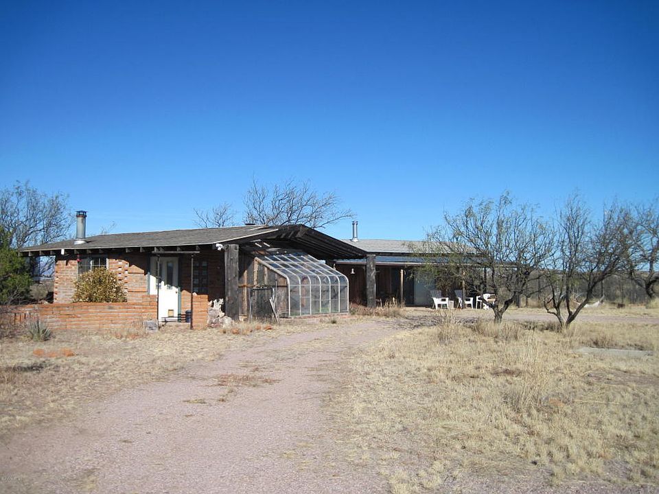 Custom Adobe hexagon studio with greenhouse, wood stove provides heat. Excellent views. Separate building for guests or as a shop or studio with covered outdoor area. 1000 gallon water tank and propane tank come with this 7+ acre parcel located off of Ruby Rd. Please contact the office to view as the property is rented.