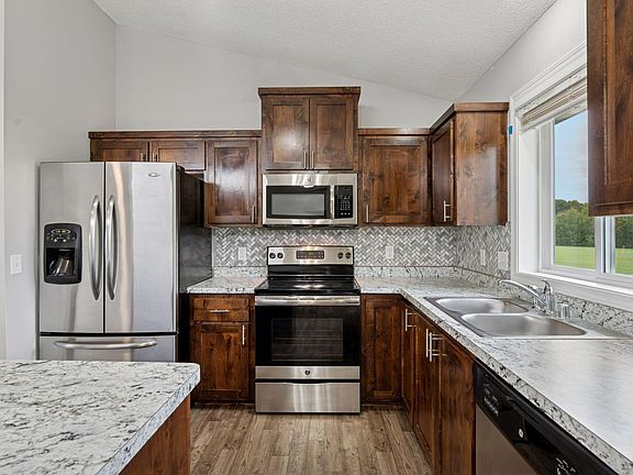 This charming home features three bedrooms on one level with vaulted ceilings that create a bright, open feel. The kitchen offers modern stainless steel appliances, stylish cabinetry, and a center island—perfect for cooking and entertaining. The unfinished basement provides equity potential with adding a fourth bedroom & third bathroom. A heated three-stall garage that’s ideal for Minnesota winters, accompanied by a shallow well for irrigation in the summers. There’s also room to add a deck overlooking open fields. With a paved path to nearby schools, this property offers the perfect blend of privacy and convenience—ready for you to make it your own.