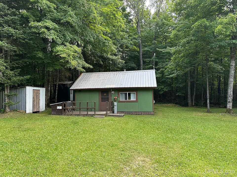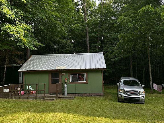 This well-maintained camp is situated on 10 acres of mixed timber, including beautiful hardwoods, and directly adjoins hundreds of acres of state land just across the road—offering exceptional access to the great outdoors. The property features legal, year-round access and is equipped with a 200-amp electric service, a drilled well with a hand pump, and a wood stove that keeps the camp cozy through all seasons. The fully insulated cabin comfortably sleeps up to eight and includes a shower room with an on-demand water heater and a wall furnace for added comfort. A well-groomed trail leads from the camp to an established deer blind, ready for the season—as evidenced by the impressive wall of antlers inside. Whether you're an avid hunter or a winter enthusiast looking for a private retreat, this camp offers the perfect Up North getaway.
