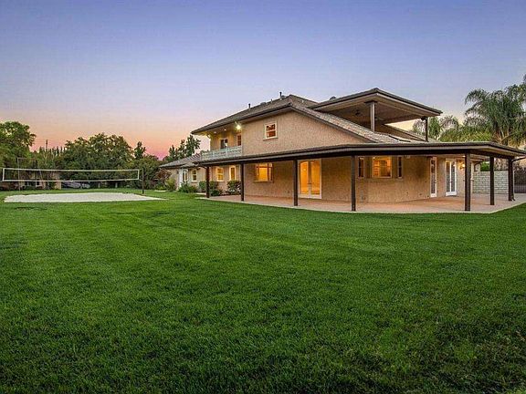 Custom Estate Home within a small gated community & hosting fabulous amenities including a nearly 2-acre flat lot w/prof. landscape & hardscape w/a double-wide u-shaped driveway, an oversized attached garage & a detached garage w/a long driveway & an RV pad. Multiple garages, driveways & parking may host up to 30+ cars! Stepping through the double door entry is a sweeping curved stairway, chandeliers, a FLR w/a media center & FP, a FDR w/a trey ceiling & chandelier, a granite kitchen w/a bfast nk, stainless appliances, a Butler's Pantry w/a walk-in closet & a game rm w/a wet bar & French doors leading to the sprawling backyard featuring a wrap-around patio, a lg. grassy yard, a custom swing set & tiered decking hosting a spa, a fire pit & an enormous beach entry Pool.