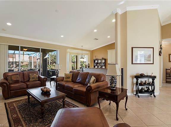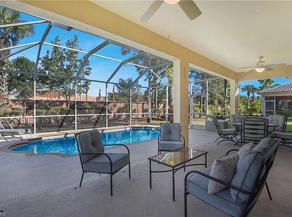Seller says Sell, bring all offers. Immaculate pool home in sought after Forest Park Gated Community! This single family pool home offers 3 bedrooms + den in a great room design, Surrounded by lush Landscape. This home features many upgrades, including arched window French front door entry, custom tile work in foyer, vaulted ceilings, wide panel sliders to lanai, bay window system in breakfast nook, crown molding, and tile flooring throughout. Light and bright. The front bonus room can be used as a study, Dining or sitting room. Large Master suite features private bath, double vanities and 2 WI closets, with sliders leading to covered lanai and pool area. A/C unit was replaced in 2013, with a transferable service contract in place. You will love spending time in the SWFL sun on the extended lanai that offers a pool and large under truss area with enough room for an outdoor dining set and lounging chairs. Forest Park is a small gated neighborhood that has a clubhouse, community pool, gameroom, billiard room and fitness center. Convenient Naples location close to shopping, dining, restaurants and famous naples beaches.
