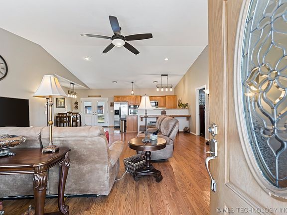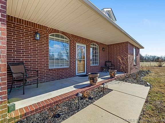 French Country, full brick, 3 bedroom 2 3/4 bath Home on 3 Acres M/L. 30x50 shop w/2 overhead doors, 2 walkthrough doors, car lift, office & half bath. Shop is a suitable setup for a home business or hobby enthusiast. Newly remodeled home with upgraded stainless appliances, new paint and new light fixtures. Granite in kitchen w/bar & dining area that leads to covered back patio. Open floor plan, vaulted ceiling, laminate & tile throughout, master bedroom has 2 closets and jacuzzi tub in master bath. Beautiful setting w/ pipe entry, asphalt drive, vinyl fence, Rv/tractor carport, fully fenced w/ mature pecan trees. Come enjoy this peaceful acreage and all it has to offer. Located near highway 75 and 30 minutes south of Tulsa. Additional acreage available.