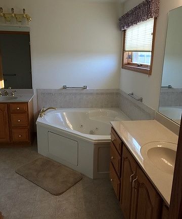 Nice open, airy ranch close to shopping, restaurants, and road access in all directions. Master bedroom suite in private "wing" with whirlpool, separate shower, and "His" and "Her" vanities plus walk-in closet and double door closet! Large living room and separate dining room with access to kitchen. Sunny kitchen has walk-in pantry, breakfast bar, all appliances, and wonderful dinette with views of yard~Family room has brick fireplace and opens to kitchen~Two other bedrooms with hall bath comprise the other "wing" of the home~First floor laundry with soaking tub and closet~Large three car garage and basement for storage~Tenant(s) over 18 pay for credit check and background check(s)~Credit score over 625~Dogs OK, but will go on case-by-case basis on size~References will be checked and job(s) will be verified~No smoking~Lease one year or longer only~Dining room set can stay, if wish, or go~Wonderful home!