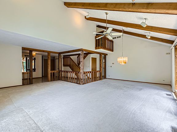 CUSTOM CONTEMPORARY in Williamsburg Green! This energy efficient home on just over an acre has an outstanding location in an upscale neighborhood in School District 301! It was built with 2x6 exterior walls, allowing for extra insulation, and has generous room sizes throughout, including the huge 2nd family room w/2nd fireplace on lower walkout level! The first floor has a captivating vaulted living room and dining room! It also features a spacious family room w/brick fireplace. There are 2 first floor bedrooms along with a full bath and a powder room. The kitchen features a large eating area with a great view of the back yard! On the second floor is the huge primary bedroom suite, w/walk-in closet and another wall closet. The full bath on the walkout basement level is also huge, w/large jetted tub. This home needs updating and a new rear deck, but is priced accordingly.
