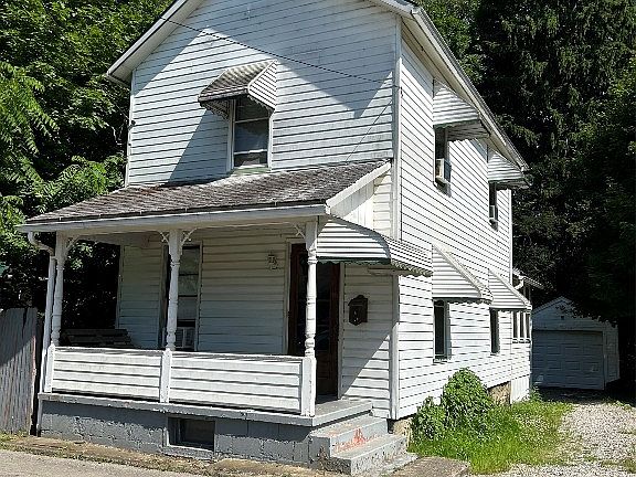 Welcome to 38 1/2 Franklin St! The covered front porch is perfect for entertaining or relaxing and the back enclosed porch offers a secondary entry/exit point closer to the garage. The property features parking options in both the driveway and single car garage located behind the house. The first floor features a living room, dining room and kitchen. The second floor includes a full bathroom, 2 bedrooms and large landing area at the top of the stairs. Laundry is located in the basement which can be accessed both inside and outside the home. Come enjoy low taxes and relaxing evenings on the porch at 38 1/2 Franklin St!