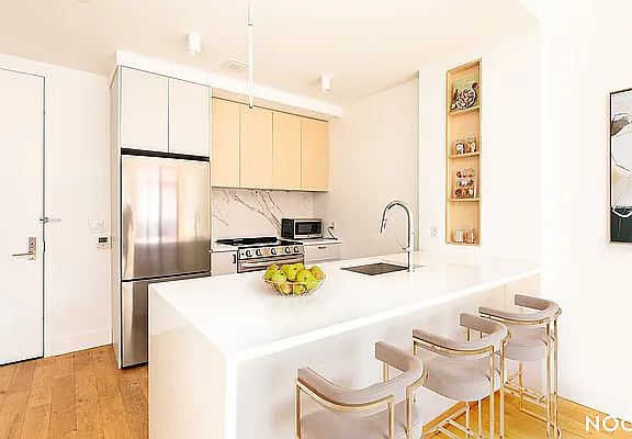 Abundant natural lightIntegrated lightingVirtual doorman akuvox intercomBreathtaking viewsHuge windowsFurnished roof deckHigh-quality stainless steel appliances