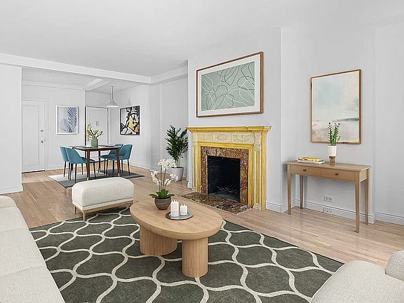 Prewar Perfection in Prime Midtown. Bright and lovely 2 bedroom apartment with North, South & West exposures, overlooking interior garden and with great natural light all day. This elegant apartment has a working wood burning fireplace, a very spacious windowed kitchen, hardwood floors, great storage space throughout and 2 tasteful bathrooms.