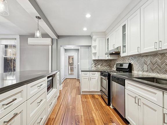 Welcome to this beautifully upgraded, sun-filled brick home, featuring a charming front porch, attached garage, and incredible NYC & Hudson River views. This rustic-modern gem offers sophistication, comfort, and versatility in an unbeatable location. Main Floor offers open floor plan with hardwood floors throughout. Coffered ceiling, exposed brick wall, LED recessed lighting, skylights, and bay windows. Modern designer kitchen with an island, quartz countertops, LG French Door InstaView fridge, and tons of cabinet & pantry storage. Stylish full bathroom with glass shower doors, conveniently located near the large composite deck and manicured backyard which feature tumbled stone, partial willow fencing, and a rustic design perfect for entertaining or relaxing. Second Level offers Three spacious bedrooms with large skylights, Ductless AC & heat in every room for year-round comfort. Master bedroom with modular closet system and breathtaking NYC & Hudson River views. Modern full bathroom, Hunter Douglas custom blinds throughout the entire house. Basement & Recent Upgrades include LG front-load washer/dryer, garage access, and flexible space for a gym or storage. New combo tankless water heater & baseboard heating, New electrical panel, wiring, and PVC plumbing. Lead water line replaced from street to house, French drain installed in backyard for optimal drainage. Prime Location- Commuter’s Dream! Minutes from NYC with easy access to public transportation. This turnkey, move-in-ready home is a rare gem, schedule your showing today!
