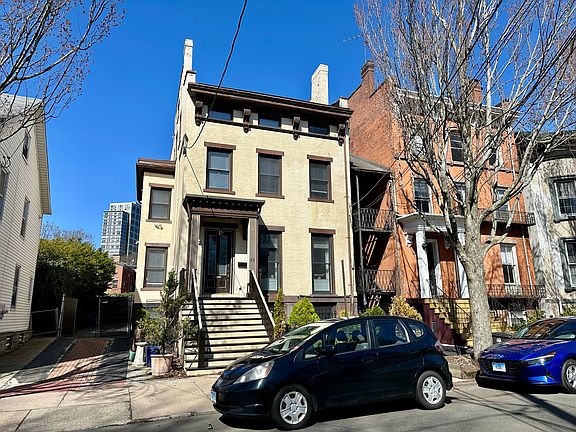 Introducing a beautifully renovated main-level unit that exudes charm and modern elegance in the heart of New Haven. This one-bedroom, one-bath residence offers a perfect blend of historic allure and contemporary finishes, situated directly across from the picturesque Wooster Square Park. Step inside to discover high ceilings and gleaming hardwood floors that create an airy and inviting atmosphere. The heart of the home is the renovated kitchen, boasting quartz countertops, stainless steel appliances, and ample cabinetry, making it an ideal space for culinary exploration. Relax in the comfort of your spacious bedroom, and indulge in the classic luxury of a clawfoot tub in the well-appointed bathroom. Convenience is key with an in-unit washer and dryer, simplifying your daily routine. Extend your living space outdoors onto the rear covered deck, a serene spot for morning coffee or evening relaxation. Additionally, this unit comes with the rare amenity of a detached garage, providing secure parking and additional storage. Located in a vibrant neighborhood, you're just a stroll away from local restaurants, shops, and the esteemed Yale University and Hospital. Embrace the urban lifestyle with all the benefits of a move-in-ready home in New Haven's sought-after Wooster Square. Bedroom armoire, kitchen island and kitchen pantry cabinet does not convey.