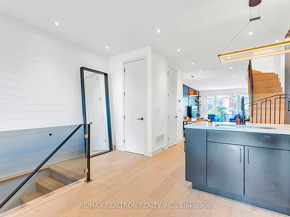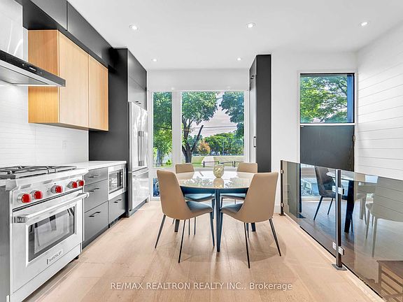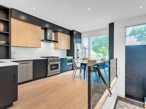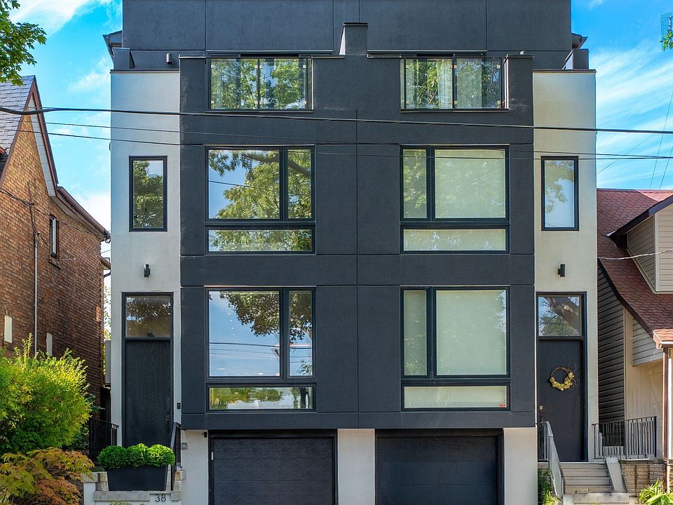 Welcome to 38 Alameda Avenue, a stunning three-storey home in the heart of Cedarvale offering nearly 2,500 square feet of luxurious living space. The main floor features soaring 9-foot ceilings, engineered hardwood floors, and an open concept design that seamlessly connects the spacious living and dining areas. A sleek open fireplace and custom built-ins add warmth and style, while the modern kitchen is equipped with Wolf and Fisher & Paykel appliances, quartz countertops with lots of storage. A striking custom waterfall staircase with elegant railings anchors the home, creating a dramatic design statement. Oversized windows fill the home with natural light and walk out to a deck and fenced backyard with low-maintenance composite decking, perfect for entertaining.The second floor offers three bright bedrooms and a convenient laundry room. The front bedroom overlooks the park, while the rear bedroom enjoys a private balcony, with each room designed to maximize space and light. The third floor is devoted to the primary retreat, complete with extensive built-ins, a spa-inspired ensuite, a massive walk-in closet, and a walkout balcony with park views. This level also provides access to a rooftop patio, creating the ultimate private escape.The finished lower level boasts 10-foot ceilings, a spacious recreation room with built-ins, a full bathroom, and direct access to the built-in garage, plus a private driveway that accommodates two additional cars.All of this is set in one of Toronto's most desirable neighbourhoods, just steps from Cedarvale Park, top-ranked schools, the new LRT station, and an array of vibrant shops and restaurants. With thoughtful design, high-end finishes, and an unbeatable location, this home is the perfect blend of luxury and convenience.