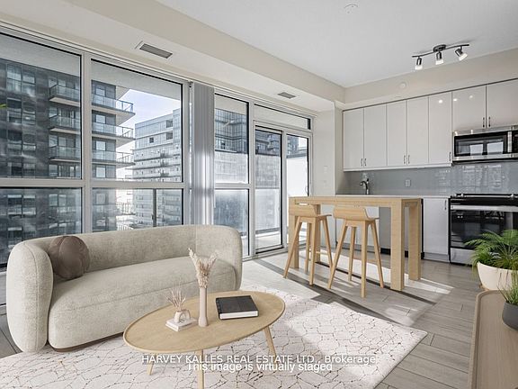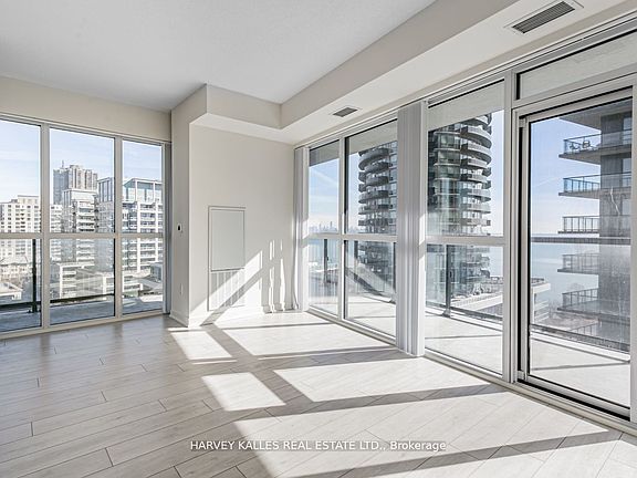 Welcome To Water's Edge Condos At Toronto's Prestigious Humber Bay Shores. Highly Sought After Layout And Beautifully Designed Corner Suite, Offering Stunning City Skyline And Lake Views. The Spacious Bedroom Features Direct Access To The Balcony, A Proper Entrance Door, And Semi-Ensuite Bathroom Access For Added Privacy And Convenience. The Modern Kitchen Is Equipped With Full-Sized Appliances, Undermount Lighting, And Offers Easy Access To The Large L-Shaped Balcony-Perfect For Entertaining Or Relaxing. High 9ft Ceilings And Expansive Floor-To-Ceiling Windows Flood The Suite With Natural Light, Enhancing The Bright And Airy Feel Throughout. The Building Amenities Include A Gym, Indoor Pool, Theatre Room, Guest Suites, Party Room, Outdoor Terrace With BBQ, And More - Creating The Perfect Lifestyle Experience For Residents. Included With The Suite Are One Parking Spot And One Locker, Ensuring Your Convenience And Storage Needs Are Covered.