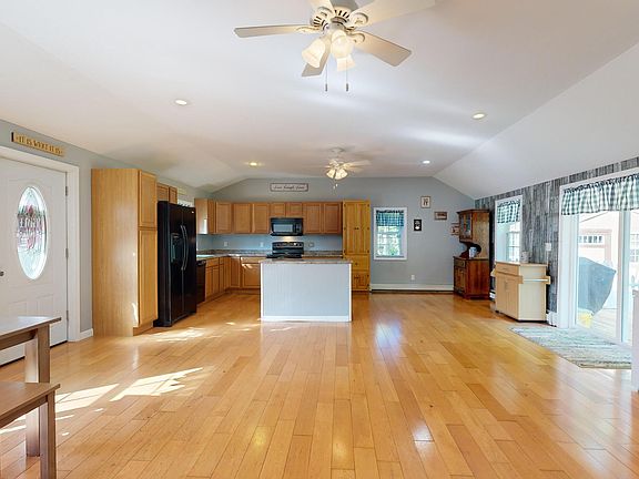 Step inside to find a bright and airy interior with cathedral ceilings that create an open, inviting atmosphere. The home boasts a thoughtful mix of wood, carpet, and vinyl flooring, blending style and practicality.