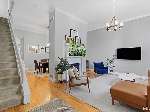 This is the newest home on the oldest private street west of the Mississippi. Sitting at the end of the cul-de-sac across from the center of Lafayette Park on a oversized double lot. Amazing hardwood floors across the main level. Double-sided working gas fireplace facing the living and dining rooms. Coat closet, pantry, spacious half bath and a top-notch kitchen, and sunroom perfect the first floor. Kitchen has double-stacked, premium, wood, white shaker cabinets, high-end appliances, and granite countertops; it's a great, light-filled room. 2nd floor features two bedrooms with private baths. The primary suite has a wall of windows with views of the beautiful, old growth, median park. Also has 2nd floor laundry hookups, a walk-in closet, and premium shower with double vanities. Top floor is the best! A walk-out rooftop deck is amazing for 4th of July fireworks! Family room and 3rd bedroom suite are terrific. Lower level with additional laundry, play room, and storage. Two car garage, sweet yard perfect for playing, nice back patio, and so much more!