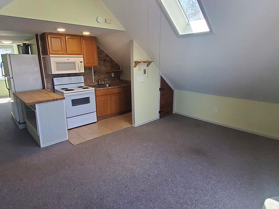 **New Section 8 Approved Unit** 1 bed master-suite 1 bath 3rd floor $1200 Valted ceilings Skylights New carpet New paint New tub tile surround Private deck Off street parking Laundry room on-site Quiet neighborhood Close to highways We usually look for credit in the 600s and a total monthly income before taxes of $3600 to qualify Credit and criminal backround check Separate utilities. Owner pays for cold water, sewer, and trash. Month to month lease to start