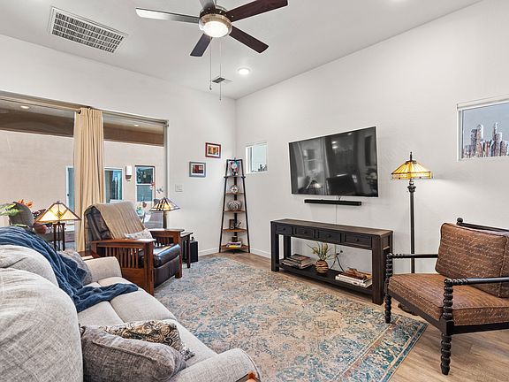 This is a must-see, better than new, spacious townhome that lives like a house, has modern luxe finishes and beautiful mountain views. Walk in the front door to be greeted by the welcoming open floor plan, which maximizes the natural light from the home’s ample large windows. The chef-ready kitchen boasts quartz countertops, SS appliances, pantry, hand-made subway tile, ample storage, and views to your private patio. Primary en suites on both floors offer your guests a luxury haven or provide an ideal layout for your multigeneration family. Laundry hook-ups are upstairs and down for ultimate convenience. The covered patio, fully fenced yard, and low-maintenance landscaping offer a great outdoor entertaining experience as well as privacy. Upgrades include custom cellular shades, keyless locks, high-end dishwasher, insulated garage door, and hand-painted tile above stove. Fridge and custom-fit window shades stay. Located in the quiet Oshara Village community, you’ll have parks, hiking trails, and a popular restaurant nearby, plus easy access to I-25 and Santa Fe Community College.