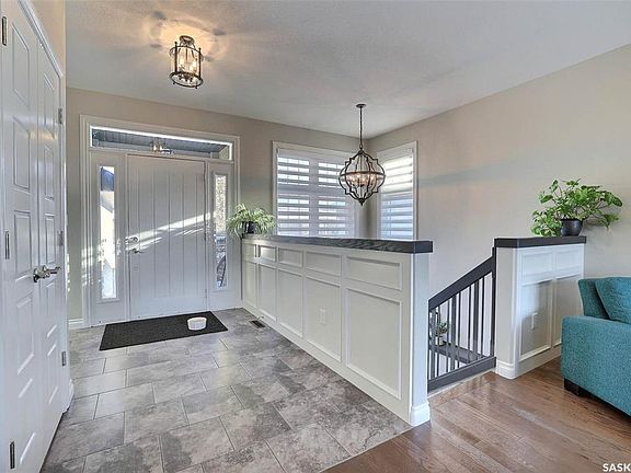 Absolutely stunning former Emerald Park Homes Showhome. Meticulously kept this beautiful fully developed bungalow is better than new. Spacious, open layout has large front entry leading to generously sized living area boasting fireplace feature wall and custom built-ins, chef's dream gourmet kitchen with massive eat up island, custom granite countertops, high quality custom cabinetry to the ceiling are interiorly backlit, pantry and glass tile backsplash. Family sized dining area and abundance of south and west facing oversized windows flood the main floor with natural light along with gorgeous like new high quality hardwood floors throughout living areas. Large primary suite with 3pc ensuite featuring oversized shower, double vanity and walk in closet with custom shelving. 2nd bedroom generously sized. Main floor laundry with additional builder grade cabinets plus folding counterspace. Large, versatile mudroom off the front entry with lockers plus 2 extra closets for more storage. Direct entry to massive mechanics dream 31x28 triple attached garage. Heated, wired 220 and finished with extra height doors. Builder dev bsmt accessed by beautiful open rail custom staircase featuring 2 large corner front windows for extra brightness. Massive RR with fireplace feature wall, with large storage closets. 2 oversized large bedrooms with big windows very handy media room/den office and another 4pc bath plus and bonus 2nd laundry in utility room. Gorgeous, professionally landscaped and well treed private rear yard has a large maintenance free deck leading to lower custom stone patio with firepit feature. Additional pad for future hottub (wiring ready) large shed, lush lawn and tiered garden planter boxes. Underground sprinklers both front and back with drip lines for every tree and shrub on timers and handy dog run. So many upgrades and special features including all appliances, gemstone lighting on entire home, Home audio surround sound throughout. Call today!