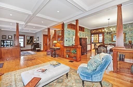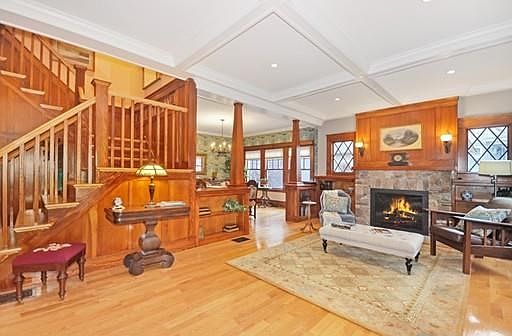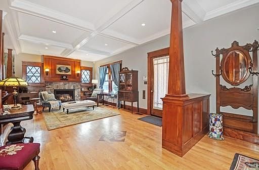 - Liv Dscrp: Fireplace, Flooring - Hardwood, Recessed Lighting, Ceiling - Coffered