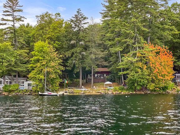 Don't miss this rare chance to build your dream lakefront retreat with approvals and a stunning year-round custom design already in place. Nestled on the quiet northern shore of Lake Waukewan, this exceptional property offers a perfect blend of seclusion and adventure. Unlike busier lakes nearby, Waukewan provides a peaceful setting where kayaks, sailboats, and powerboats coexist in harmony with nature. Enjoy waterskiing, fishing, and paddleboarding in summer, while winter invites ice skating and cross-country skiing from your doorstep. This unique opportunity includes a 1-year approved setback variance to construct a spectacular home with 1,500+ sq ft on the first floor, a full walkout basement, and a two-car garage. Architectural designs and renders are available upon request. A gently sloping lawn leads to a pristine sandy beach and a newer 32-foot L-shaped dock, offering breathtaking southeast views of protected shoreline and Chapman Island, preserving the untouched beauty of the lake. Wake up to stunning sunrises and unwind to the call of loons and soaring bald eagles. With a coveted four-bedroom septic design (installed in 2006), two deeded lots of record, and frontage on two roads, this property is ready to become your ideal lakefront escape. Enjoy the original cottage this summer while planning construction. Conveniently located near downtown Meredith, top-tier ski resorts, and within easy reach of Boston, this is lakeside living at its finest.