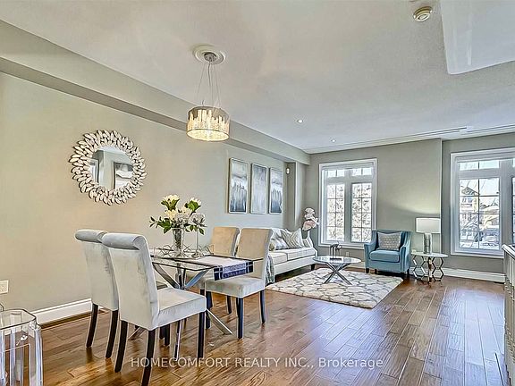 End-unit townhouseLarge windowsHardwood floorsModern finishesCustom eat-in kitchenQuartz countersLarge center island