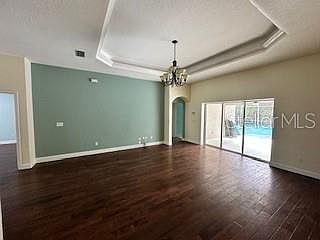 Step into this exquisite 4-bedroom, 3-bathroom residence, designed for those seeking both luxury and functionality. The home is highlighted by soaring vaulted ceilings and triple sliders that open to a secluded screen backyard solar pool with overflowing spa. This thoughtfully configured home provides versatile room use possibilities to suit your unique lifestyle. The lower level features four spacious bedrooms plus an office, while the upper level unveils a sprawling bonus room, perfect as an in-law suite, entertainment area, or whatever your heart desires. This versatile space is equipped with a wet bar, closet, pre-wiring for sound, and a well-appointed bathroom. Recent upgrades enhance the allure of this property, including a newer roof, glass front door and garage door. Contemporary ceiling fans add to the stylish and comfortable living environment. Step into your backyard oasis, designed for elevated entertaining around the solar-heated, screened-in pool with a sunbathing island and outdoor shower. Safety and peace of mind are ensured with the home's robust block construction and hurricane shutters, including motorized shutters for the rear lanai and front door. Situated in the Hunters Ridge neighborhood, residents enjoy access to upscale amenities such as a tennis court, two community pools, a clubhouse, and extensive sidewalks perfect for leisurely strolls.