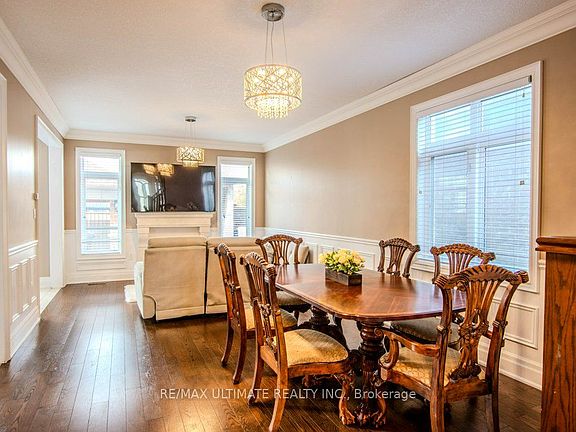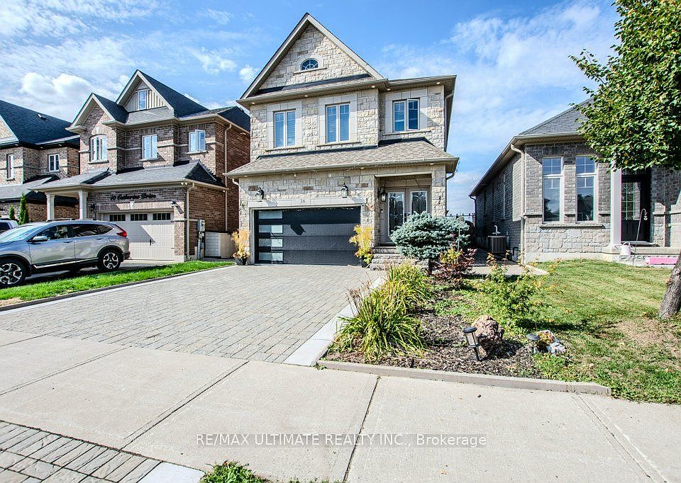 This custom-built home, completed in 2015, boasts over 2,500 square feet of high-quality living space. The exterior features a beautiful stone front and a double glass door that opens to a spacious foyer with a double closet and a powder room. The open-concept dining and living area includes a gas fireplace and elegant wainscoting throughout, complemented by crown molding. The custom kitchen is equipped with cabinets extending to the ceiling, a ceramic backsplash, and sliding doors that provide access to a concrete deck. An oak staircase leads to the second floor, where you will find an extra-large primary suite featuring a four-piece ensuite bathroom with a separate glass shower, a custom vanity with a granite countertop, and a walk-in closet. Additionally, there are two generous bedrooms and an office/media room with a window. The professionally finished basement has a separate entrance and includes a modern kitchen with quartz countertops, which flows into the living room and a den. The backyard is fully fenced and features a custom stone and brick gazebo, along with a large custom shed. The property also boasts an interlock driveway and a beautifully landscaped backyard, making it a unique home with many quality custom upgrades.