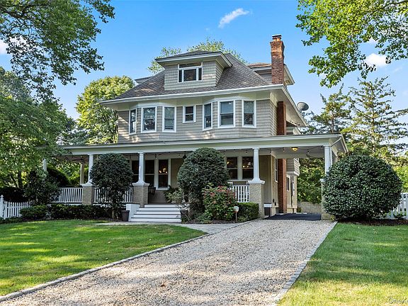Known to longtime locals as “The Paint Box” pre-school, this iconic 1904 Craftsman home in the heart of Stony Brook sits on nearly an acre of beautifully landscaped grounds, offering a true retreat complete with a heated in-ground pool, natural rock waterfall, pickleball court, and lush gardens that provide both color and privacy.