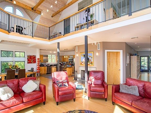 Three thousand square feet of elegantly designed modern features accented with beautiful wooden beams & vaulted 2.5 story ceiling. Steps to Davis Square. Wonderful balance of expansive lofty living space and private cozy rooms. Truly flooded with light, south-exposure, & tree-top views. 2-3 parking spaces, 1 garage, private yard. Built in speakers, central vac. Come see this architect's Masterpiece. Showings by appointment. Please note, this is a large separate entrance condominium and is also listed as MLS #72213756.