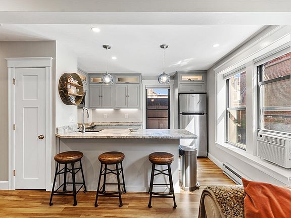 This fully renovated North End condo blends style and efficiency across its 471 sq ft. Completely redone in 2018, the unit features a custom high-end kitchen with full-size appliances, built-ins, and sleek finishes throughout. New flooring, updated lighting, and a modern bathroom complete the transformation. The layout lives larger than expected, with flexible space for living, relaxing, and even working from home. The six windows provide ample sunlight throughout the day. Located on a quiet street, two flights up in an extremely well-maintained, professionally managed building, the home also includes basement storage and access to a common roof deck with panoramic city views. Whether you're a first-time buyer, investor, or looking for a low-maintenance city home, this turnkey condo offers excellent value and historic North End charm, just moments from dining, shops, and the waterfront.
