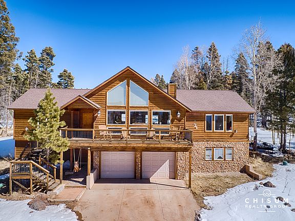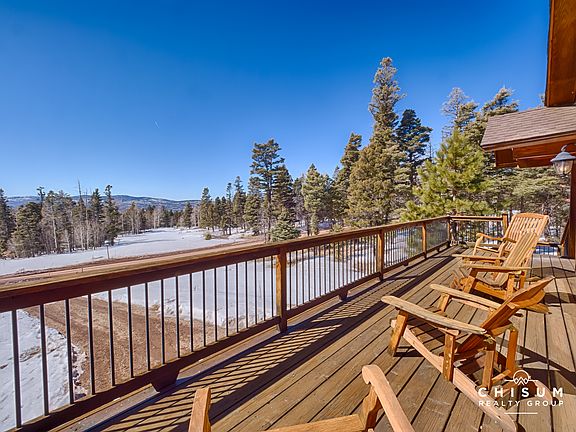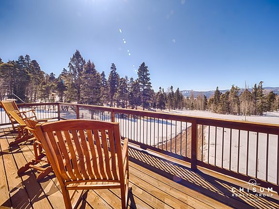 Tucked high above Angel Fire, on .82 acres, you'll find this custom-built, chalet-style home. Privacy is abundant on Cheerful Way and your views can always be protected since the one acre lot across the street is also being offered for sale with the purchase of this home! 38 Cheerful Way is well appointed throughout including the sprawling great room that features a vaulted tongue and groove wood ceiling, a custom wood burning fireplace and a large window wall that floods the home with sunlight. Unlike many north facing homes in Angel Fire, sunshine is abundant which keeps it very cozy all winter long. The adjacent kitchen has solid wood cabinets, granite countertops, stainless steel appliances, and a dining area. The dining area also has French doors that lead you out to the back patio that includes a covered hot tub area! There is also a large front deck if you want to bask in the New Mexico sun! The master bedroom is located on the main floor with a walk-in closet, entertainment nook and an ensuite bathroom that features dual sinks, a jetted soaker tub, a separate shower and a toilet room. Two more guest bedrooms are on the west wing of the home as well as a full bathroom and laundry room. The lower level contains a bonus room with a sauna and a two car garage. 38 Cheerful Way comes fully furnished so please ask to see an inclusion list.