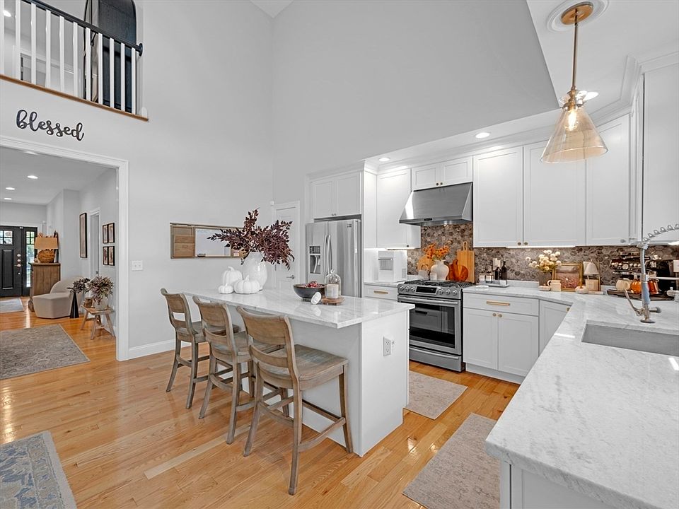 This stunning townhome showcases modern luxury in a premier location—just a half mile from vibrant downtown and minutes from the Assabet Rail Trail. A dramatic vaulted living room with a striking fireplace and gallery balcony sets the tone for sophisticated living, while the chef’s kitchen dazzles with quartz countertops and island, premium stainless steel appliances, and custom cabinetry. A formal dining room and private office enhance the expansive first floor. Upstairs, three generous bedrooms include a serene primary suite with a spa-like bath and sitting area. Sun-filled Anderson windows highlight exquisite details throughout. Extend your living space outdoors with a covered seating area, low-maintenance composite deck, & fenced-in yard, perfect for relaxing and entertaining. A spacious garage plus additional parking add convenience. Blending tranquility with accessibility, this move-in-ready residence offers elegance, comfort, & effortless living in a charming New England town.