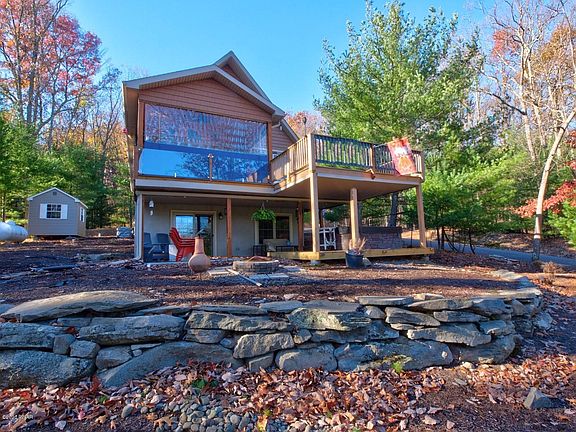 Magnificent 2nd tier home with all the bells and whistles! This gorgeous 4 Bedroom 4 Bath home features amazing sweeping views of Lake Wallenpaupack! Boasting a beautiful kitchen and custom cabinetry and granite stainless steel appliances. Large master bedroom and bath suite on main level consisting of custom tiled flooring, oversized shower with custom body sprays, Central air and tankless hot water also 22kw whole house generator Lots of glass in living room facing the lake, just outside the sliding doors is a large covered patio with canvas enclosure to extend the warm summer months also a large deck to entertain on! The upper level consists of 2 more spacious bedrooms and full bath. Leading down to the lower level is an inviting family room, laundry room and 4th bedroom.