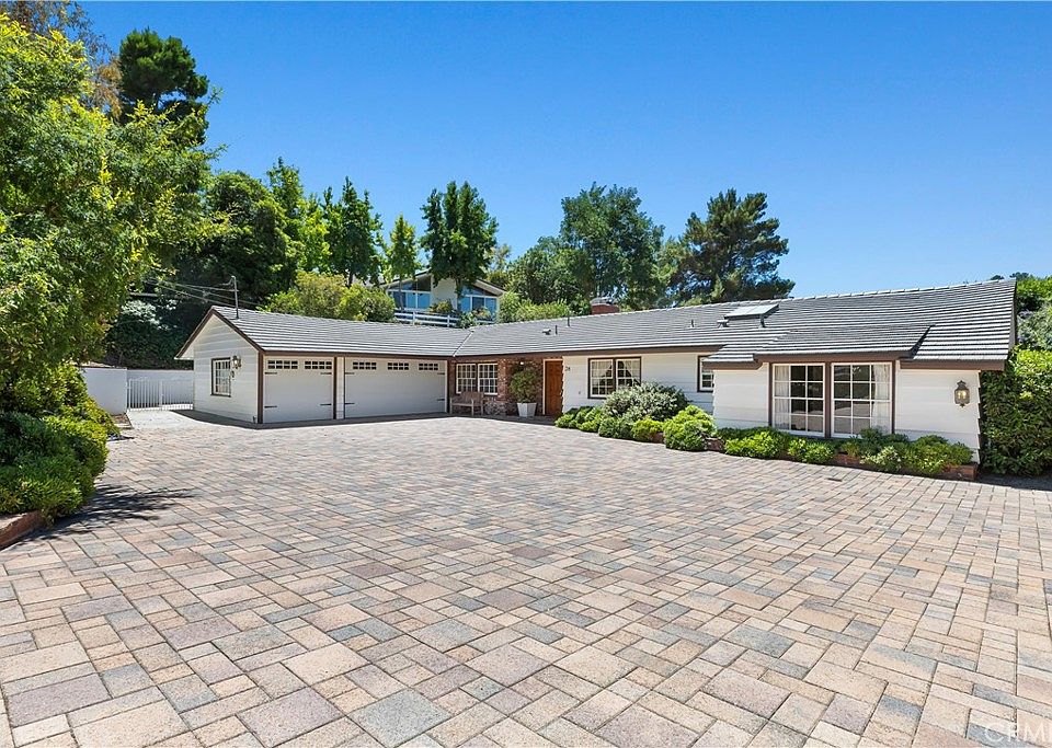 Sitting behind the gates of Rolling Hills, is this beautiful remodeled 1-acre estate featuring 4 bedrooms, 2.5 bathrooms, 2,604 sq. ft. of living space plus 3-car garage. As soon as you enter this home you are greeted by a light and airy, spacious floor plan including living room with fireplace, formal dining room, family room, and gourmet style kitchen. Highlights include beautiful vaulted wood ceilings throughout the home, newer wood flooring, quartzite countertops in the kitchen, and so much more. The primary suite includes walk-in closet, plus a remodeled ensuite bathroom with claw-foot soaking tub and dual sink vanity. Step outside through the beautiful french doors to your outdoor oasis, with a huge patio space with plenty of room for outdoor entertaining while overlooking picturesque pastoral views. Take a few steps down to the lower pad where the options are endless, room for a barn or perhaps even a guest house! Extensive remodeling was completed in 2017, including flooring, kitchen and bathrooms and then in more recent years the a/c unit and roof were replaced. This property truly has it all, enjoy country style living with city conveniences.