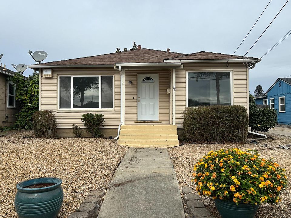 Welcome to this inviting bungalow-style single-family home, centrally located in the vibrant community of Watsonville. Offering approximately 1,168 square feet of comfortable living space, this home features a spacious living room filled with natural light, three generously sized bedrooms, and one and a half bathrooms. The kitchen opens to a cozy dining area and boasts ample countertop space, generous cabinet space, and a built-in microwave, perfect for everyday living and entertaining. Recent interior updates include fresh paint and new carpeting, giving the home a clean, move-in-ready feel. Step outside to a large backyard with plenty of room for gardening, play, or relaxing, ideal for enjoying Watsonville's mild climate. Don't miss this opportunity to own a well-maintained home in a convenient location, close to schools, parks, and shopping.