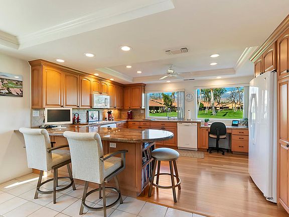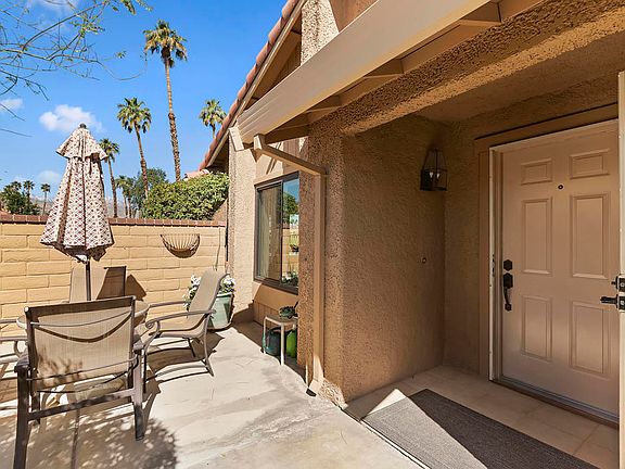 Chaparral Best of the Best!! Hurry! This premier view home has it all. As one of the most sought-after locations in Chaparral CC, these special end units with enclosed side yards are rarely on the market. From the moment you enter your PRIVATE SIDE YARD you know you are home. Enjoy this prime location with spectacular panoramic views of the snow capped San Jacinto Mountains, 15th green, 16th hole, golf course, lake and adjacent recreational pool/spa. Inside neutral tones welcome options for your own personal decorating touches. The fully renovated kitchen provides granite counter tops, beautiful cabinetry, and newer appliances. There are attractive wood and tile floors accentuated by plush carpeting in all 3 bedrooms. Other features include new high-efficiency windows and sliders, new electric awning, solar tubes and newer FAU and A/C. Additional major benefits to the home are the converted atrium that adds additional living space, a well sought after golf cart garage and its being offered Turn-key furnished. This is the unit you have been waiting for; Enjoy viewing the snowcapped mountains from your extended patio with privacy wall while you watch the golfers hit over the lake on hole #16. Chaparral offers 18 holes of challenging golf, 21 Pools & Spas, Tennis, Pickle-ball, a fully equipped Fitness room, Activity center with pool and card tables and a remodeled Clubhouse with fine dining and Entertainment