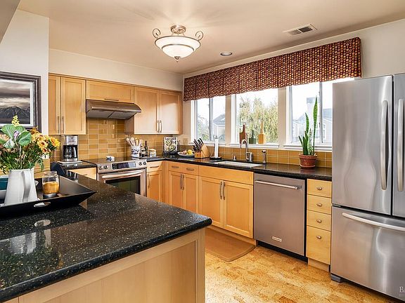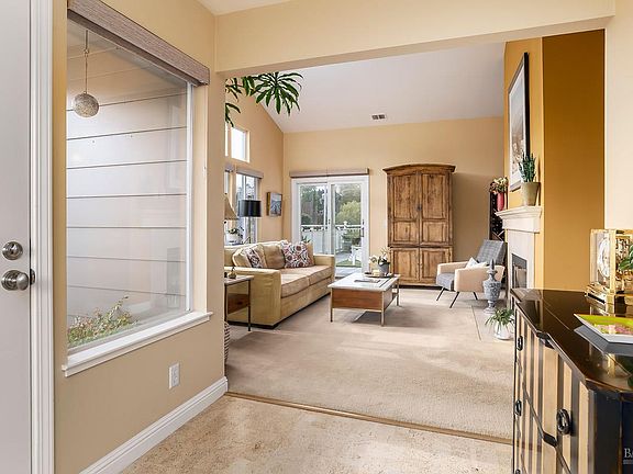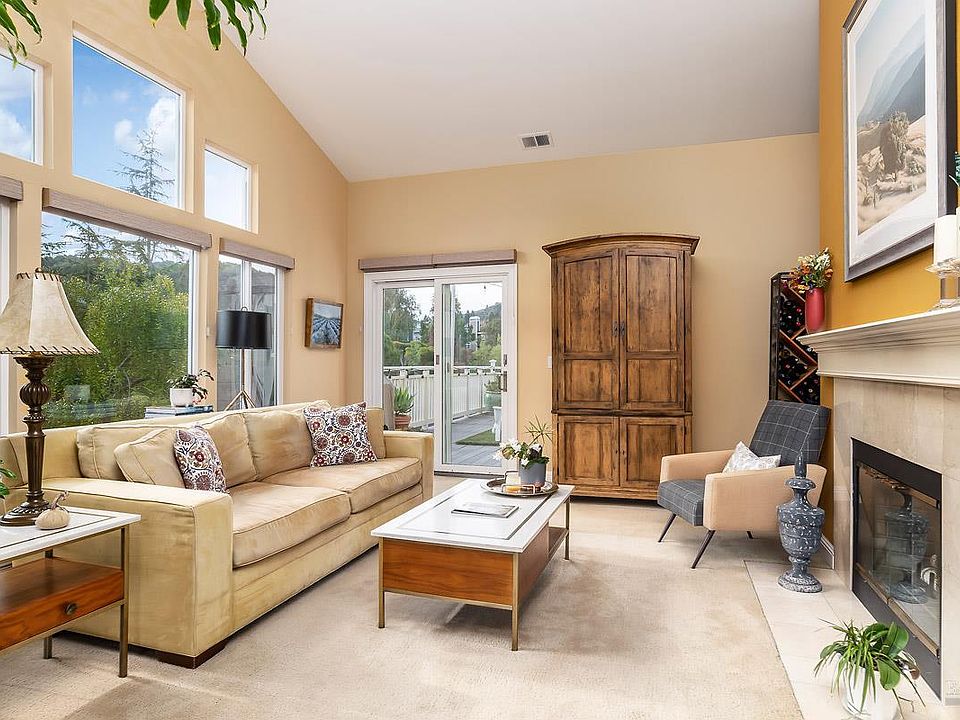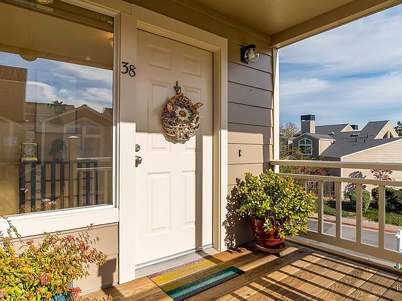 Classy, light filled, upper end condo all on one level at Meadowcreek. Enjoy the fabulous S facing views of Ring Mt, the hills and greenery from every room of this open and airy unit. Original owners have meticulously maintained and upgraded this property. Tucked away at the end of a cul-de-sac for utmost privacy. Features vaulted ceilings, large sliding doors, and skylights bringing in natural light. Living room and the two bedrooms have sliding glass doors for easy access to the large back deck - ideal for morning coffee or relaxing in the afternoons. Kitchen with views of Ring Mt includes granite countertops, tile backsplash, custom cabinets with pullouts, under mounted lights, and stainless steel appliances. Kitchen with large island opening to formal dining room. Enjoy the cozy wood-burning fireplace in the spacious living room. Primary bedroom has ensuite bathroom. Second bedroom currently used as an office with custom built-ins and a hall full bathroom. Two car detached garage at street level in back of condo. Charming backyard and garden that is beautifully landscaped. Solid HOA. Pristine condition. Enjoy the 1.6 acre Meadowcreek Park a few steps away.