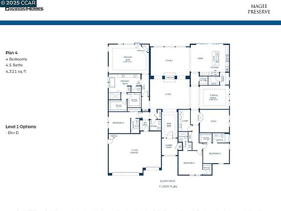 NEW PRICE! Magee Preserve by Davidon Homes presents this new SINGLE-LEVEL luxury estate home on an over ¼ acre homesite! Our popular Residence Four plan features four bedrooms with four and one-half baths in approx. 4,321 innovatively designed square feet. This thoughtfully designed and elegantly appointed residence makes a dramatic first impression with its grand entry leading into the formal living room with two-sided fireplace. Perfect for entertaining, this exceptional floor plan also features a great room, professionally-appointed kitchen, study, and an expansive primary suite with romantic gas fireplace and serene spa-like bath. Just minutes from Danville’s vibrant downtown area, award winning schools, parks and sport fields, Mt. Diablo State Park and miles of hiking/biking trails in your own back yard! Secluded and surrounded by tranquil open space, Magee Preserve offers commuter-friendly convenience to I-680, I-580, Hwy 24 and BART. Anticipated completion Fall 2025. INCLUDES OVER $158K IN DESIGNER OPTIONS AND UPGRADES!