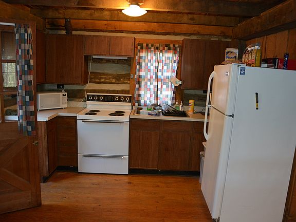 Rustic log cabin, perfect for the weekend getaway. Stone fireplace, freestanding woodstove, pine flooring on main level. Upstairs is 1 long room with rough sawn oak flooring, spaced to let heat flow. Bunk at one end, lounge at other. Bath has shower & stack washer/dryer. Large rear deck. Covered front porch. Cheap utilities & taxes. Beautiful wooded lot & nice sandstone outcroppings. No mowing. Community amenities include swimming lake (beach), fishing lake, tennis court, 17 miles to ride your ATVs, hunting.