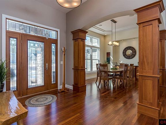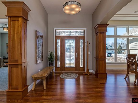 AtEXTRAORDINARY rambler custom-built by Mark Holmgren!! This home is an absolute must see and offers over 4,300 square feet of finished living space and is situated on a private .85 acre ravine lot in Upper North Mankato. The main floor of the home offers the living room, w/ gas fireplace & built-ins on each side and large windows which allow for an abundance of natural sunlight and views of the back yard, formal dining room, which features a tray ceiling w/ ambient lighting and built-in buffet and granite top, spacious kitchen which is complete with custom cherry cabinets & under cabinet lighting, granite countertops, stainless steel appliances that include a double-wall oven w/ warming drawer, built-in Miele coffee system, beverage refrigerator and a walk-in pantry. Just off of the kitchen is access to the cedar, 3-season porch and deck. Also on the main level is the master suite which features a double-tray ceiling w/ ambient lighting, his & her walk-in closets, walk-in, custom tiled shower w/ rain head & side jets, soaking tub & heated tile floor. Finishing out the main level is an office, ½ bath, mud room w/ lockers and spacious laundry room. The front entry, formal dining room, hallway and ½ bath have Brazilian Cherry hardwood flooring while the kitchen and laundry have heated tile flooring. Moving downstairs to the walk-out basement, you will find the perfect space to both entertain and relax with your family and friends. The entertainment area of the basement is comprised of a spacious family room, recreation area, wet bar w/ granite countertops, refrigerator & dishwasher and the theater room which offers two rows of individual reclined seats & soundproof walls. Just off of the wet bar, is a door for access to the patio area w/ hot-tub and back yard area. Also located in the basement are 3 bedrooms and a 3/4 bath. Additional highlights of the home include: ICF walls; Urethane spray foam insulation; In-Ground Sprinkler system; Central vacuum; In-floor heat on all tiled surfaces on the main level & basement; In-ceiling surround speakers throughout main floor, basement, patio & fire pit area; Natural gas line run to grill; Insulated and finished 3-Car Garage w/ additional staircase for access to the basement. Call today to set up a private showing on this wonderful home!