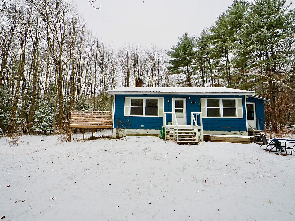 Nestled on a private 1.26-acre lot just 0.3 miles from the Moose Pond public beach and boat launch, this 3-bedroom, 2-bath home offers the perfect blend of convenience and potential. Step inside to a spacious layout filled with natural light and enjoy the newer oversized deck - ideal for summer gatherings and taking in the peaceful wooded surroundings. Durable metal roof in excellent condition, full basement with high ceilings, and a level lawn with fire pit area. Plenty of room for gardens, toys, or future expansion. Needs cosmetic updating and some TLC, but priced to reflect the opportunity. Bring your vision and turn this North Bridgton gem into your dream lakes-area retreat! Minutes to downtown Bridgton, Shawnee Peak skiing, and all Lakes Region amenities.