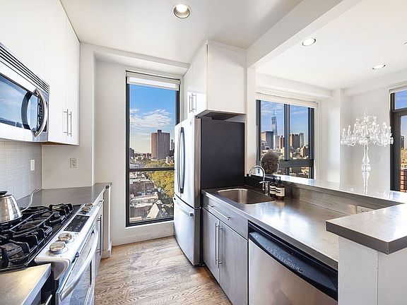 Perched high above the city, this sun-drenched 1-bedroom condominium offers breathtaking South and West exposures with panoramic views of the Freedom Tower, Brooklyn Bridge, Verrazzano Bridge, and beyond.