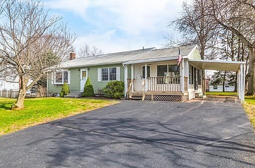 Enjoy the convenience of one floor living in this beautiful 3 bedroom 1 full bath Ranch home!! Gather friends and family in the cozy living room featuring hardwood floors and a bay window that fills the room with natural light. With an easy transition into the eat-in kitchen you will find an abundance of cabinets, large windows, and access to the covered back porch, a perfect spot to enjoy warm Spring days. Off the porch is a wood deck for all your outdoor entertaining needs and a large, fenced in backyard. There are 3 bright bedrooms on the main floor, all with gleaming hardwoods floors and good sized closets, and a shared full bath. The partially finished basement provides additional living space with a wood stove and hatchway to the backyard, as well as plenty of storage space and built-in wood shelves. Don't miss out on this incredible home!