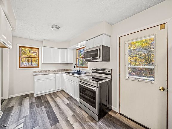 - Description: new countertops, cabinets, updated appliances, small porch,Flooring: Laminate