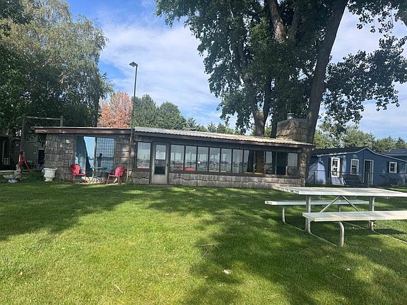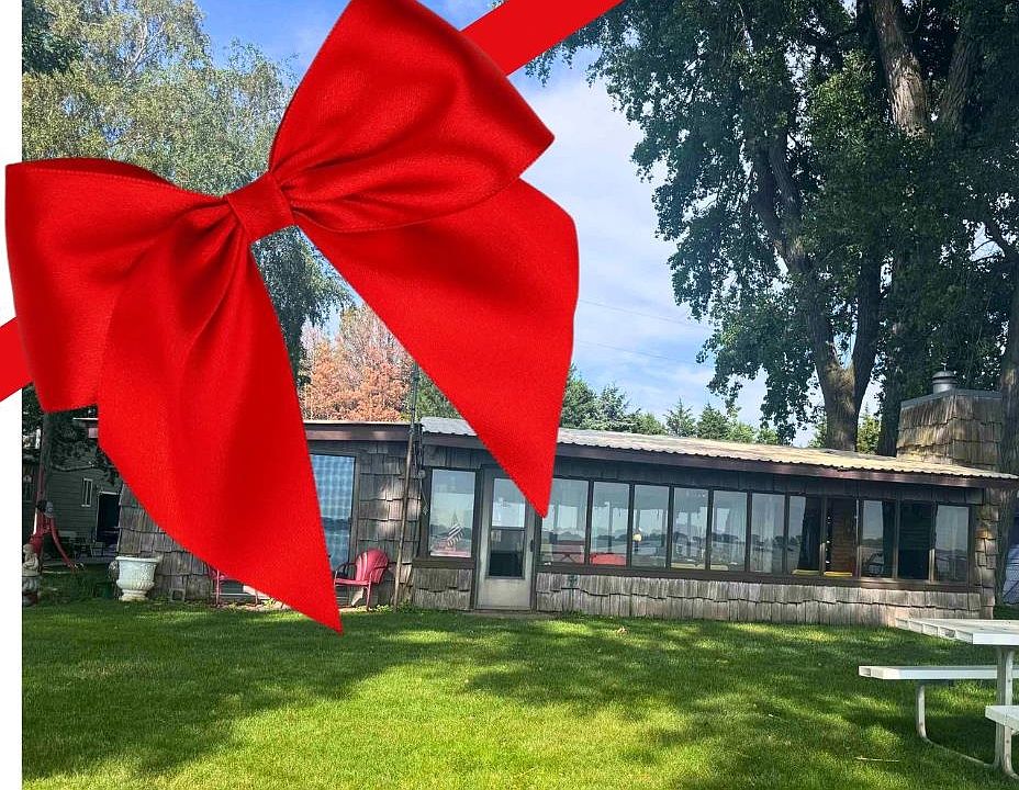 This home is part of our Red Bow Campaign — a seasonal event featuring limited-time price incentives. The red bow in the first photo marks homes offering special holiday savings, available only through January 1. After that, the savings are gone! Rustic charm meets lakeside living in this spacious one-bedroom, two-bathroom cabin on the desirable east shore of Johnson Lake. With timeless character and year-round comfort, this property is the perfect retreat or weekend escape. The living room features exposed beams and warm wood tones, creating a cozy and welcoming space. A large sunroom with a wood-burning fireplace offers beautiful lake views and a relaxing spot to unwind through every season. Step outside to a well-sized yard with underground sprinklers, your own private dock, and deep water access. Two garages provide ample storage and flexibility: an attached garage, plus an oversized one-stall detached garage with a built-in workshop for hobbies, tools, or lake gear. This east shore cabin offers a rare mix of charm, functionality, water access, and beautiful sunset views....now with special holiday pricing through the Red Bow Campaign. Schedule your private showing today.