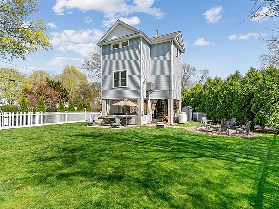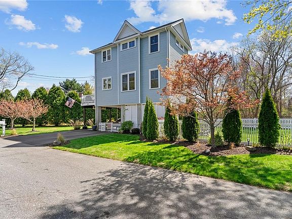 Just in time for Spring and Summer! This completely updated 2 bedroom, 1.5 bath home is scituated in Conimicut and has seasonal water views from everywhere in the house of Narragansett Bay and the ability to walk to the beach. Located on a private corner lot and enclosed with white vinyl fencing, there's plenty of room for the fire pit, full sized shed and a hot tub which abuts a wonderful and unique outdoor entertainment area complete with TV, surround sound and grilling. Lush, colorful and mature landscaping surrounds this beautiful outdoor living space. As you go up the stairs, you'll enter the open and natural light filled family room complete with hardwood floors, crown molding, high ceilings, gas fire place, freshly painted walls with Central AC and a Google Nest system. The adjoining kitchen is complete with granite countertops, SS appliances and a half bath complete with a stacking full size washer/dryer. The sliders off the kitchen bring you to a freshly painted deck with beautiful scenic views! The second level has 2 bedrooms, a full bath with double sinks and plenty of natural light. Bring your kayaks and see another treasured community in a well kept secret location in RI! Close to TF Green International airport, the Amtrak train station, 1 hr drive to Boston and 3 hrs to NYC! Location!!! This has it all!