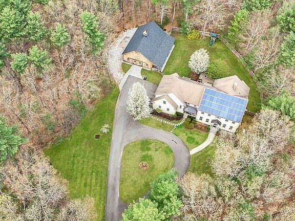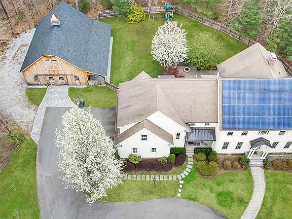This stunning custom-built home on 2.29 acres of prime real estate is a true masterpiece. Privacy in a tranquil setting with the home abutting conservation land and a private driveway with lighting. With 4BR/6BA, 3 fireplaces, and a finished basement with several additional rooms for living/work, the spacious home is ideal for family gatherings or entertaining guests. It has plenty of options for office and play spaces for children. The highlight of the property is the breathtaking barn, perfect for car collectors, woodworking or equestrian pursuits, with an upstairs entertainment and lounge/bar area that is a must see. The master suite is a true retreat, complete with a fireplace, exercise room, wet bar, large jet-tub, and walk-in closet. Enjoy the level fenced-in backyard and modern technology, including 48 paid off solar panels, Nest thermostats, security system, automated sprinkler system and a generator. Experience the best of luxury living with this extraordinary property.