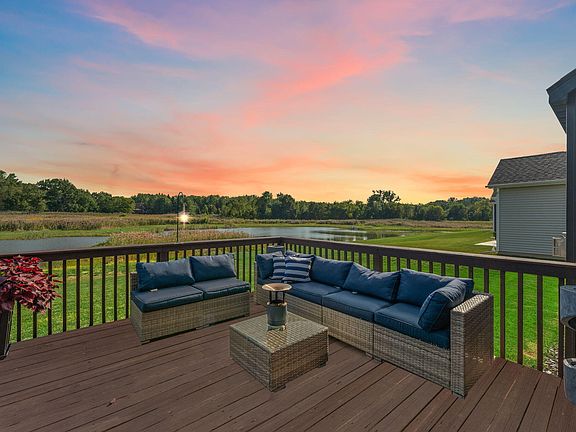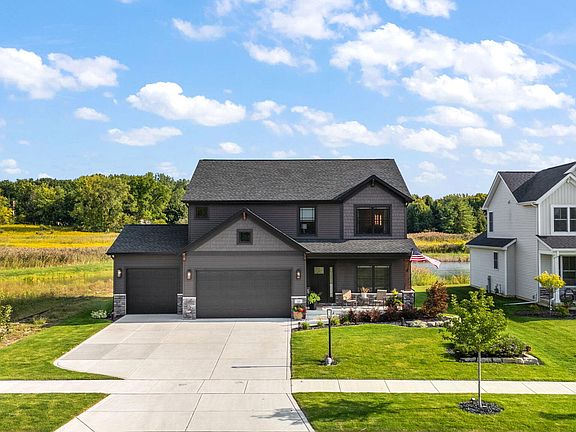 Discover a home that truly stands apart--nearly new, impeccably designed & set on a stocked pond in the coveted Meadows of Timberland. Just a year & a half old, this property combines the appeal of modern construction w/ carefully curated upgrades at every turn. From your own backyard, enjoy water views, watch wildlife, cast a line & take in the privacy of a landlocked backdrop--a retreat right at home. The inviting front porch is a showstopper w/ meticulously maintained landscaping & upon entering you are welcomed to the parlor, adorned with built-in shelving while offering space ideal for conversation or even a formal dining room. The open-concept main level is filled w/ natural light starting in the living room which invites you to gather around the fireplace. The gourmet kitchen shines w/ quartz countertops, stainless appliances, oversized island, farmhouse sink, soft-close cabinetry & spacious walk-in pantry. A stylish mudroom, half bath & seamless flow make this level both stunning & practical. Upstairs, the primary suite is a true highlight, offering vaulted ceilings, a massive walk-in closet, spa-inspired bath w/ quartz counters, custom cabinetry, dual sinks & walk-in waterfall shower. Three additional bedrooms, a second full bath, laundry w/ quartz counters & loft-style family room create an ideal setting for daily living & relaxing. The full basement--plumbed for a bath--provides opportunity to expand, while the heated 3-car garage w/ oversized 8-ft doors ensures space for vehicles & storage. Notable features include dual-zone HVAC, Marvin windows, automated stair blinds, curved walls & custom lighting throughout. Perfectly situated, this home keeps you close to everything--highways, shopping, dining, & the local hospital--while placing you minutes from the Indiana Dunes National Park & Shores of Lake Michigan. Luxury, style & views that inspire, schedule your showing today!